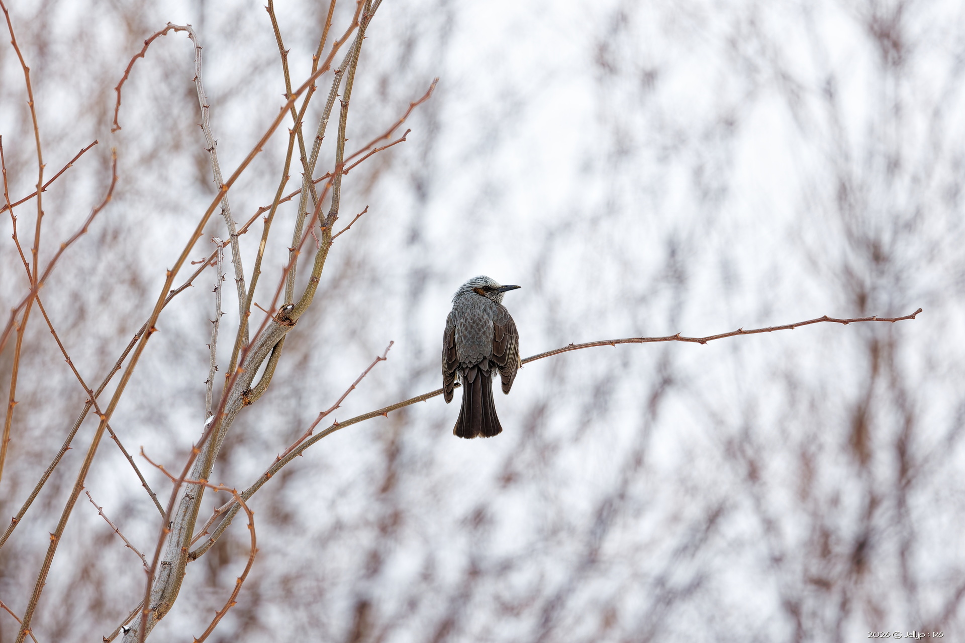 山でも何でもない河川敷だけど雪化粧でめっちゃイイ感じです!が・・・ヒヨドリさんしか見付けられなかったw