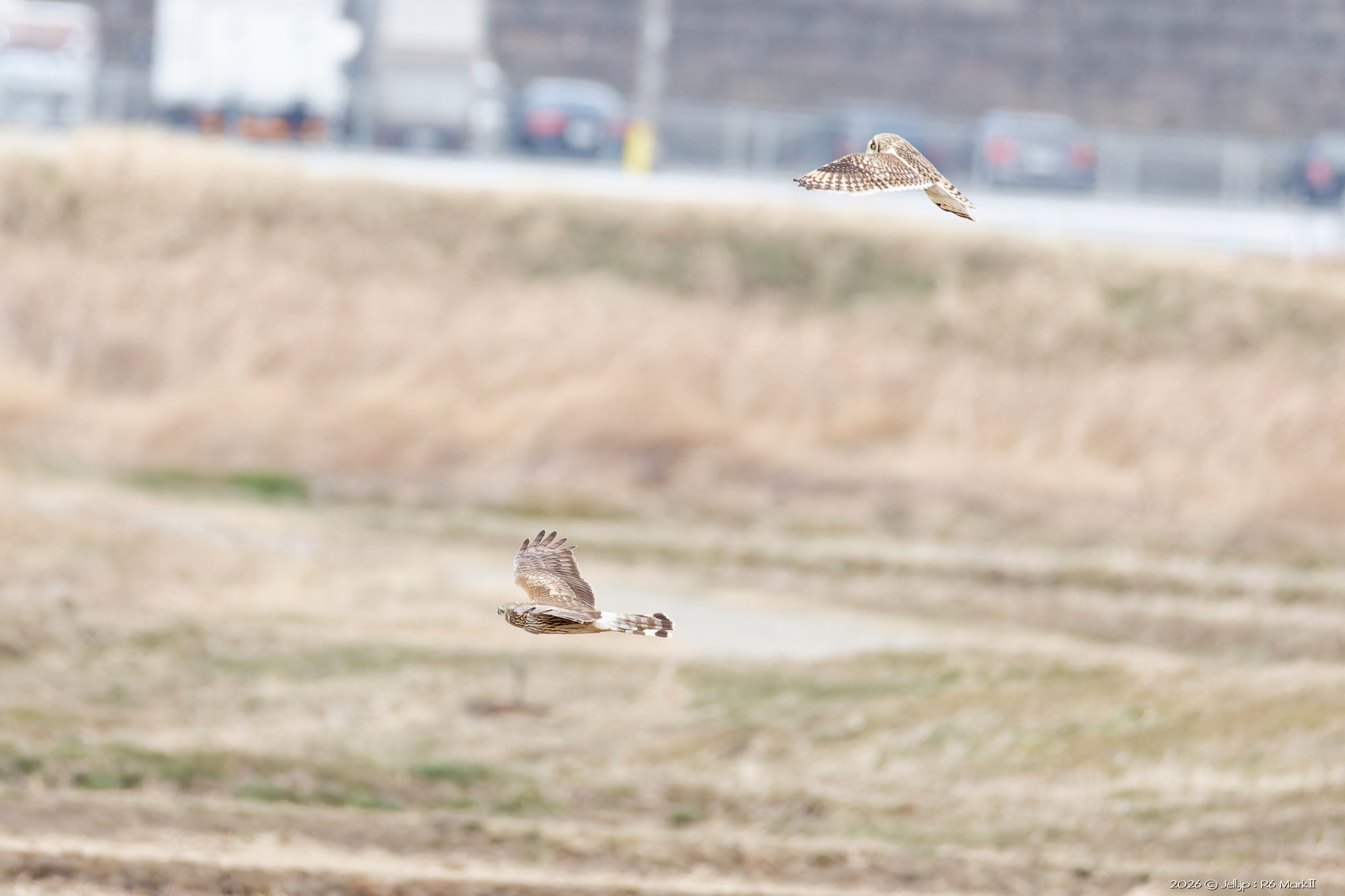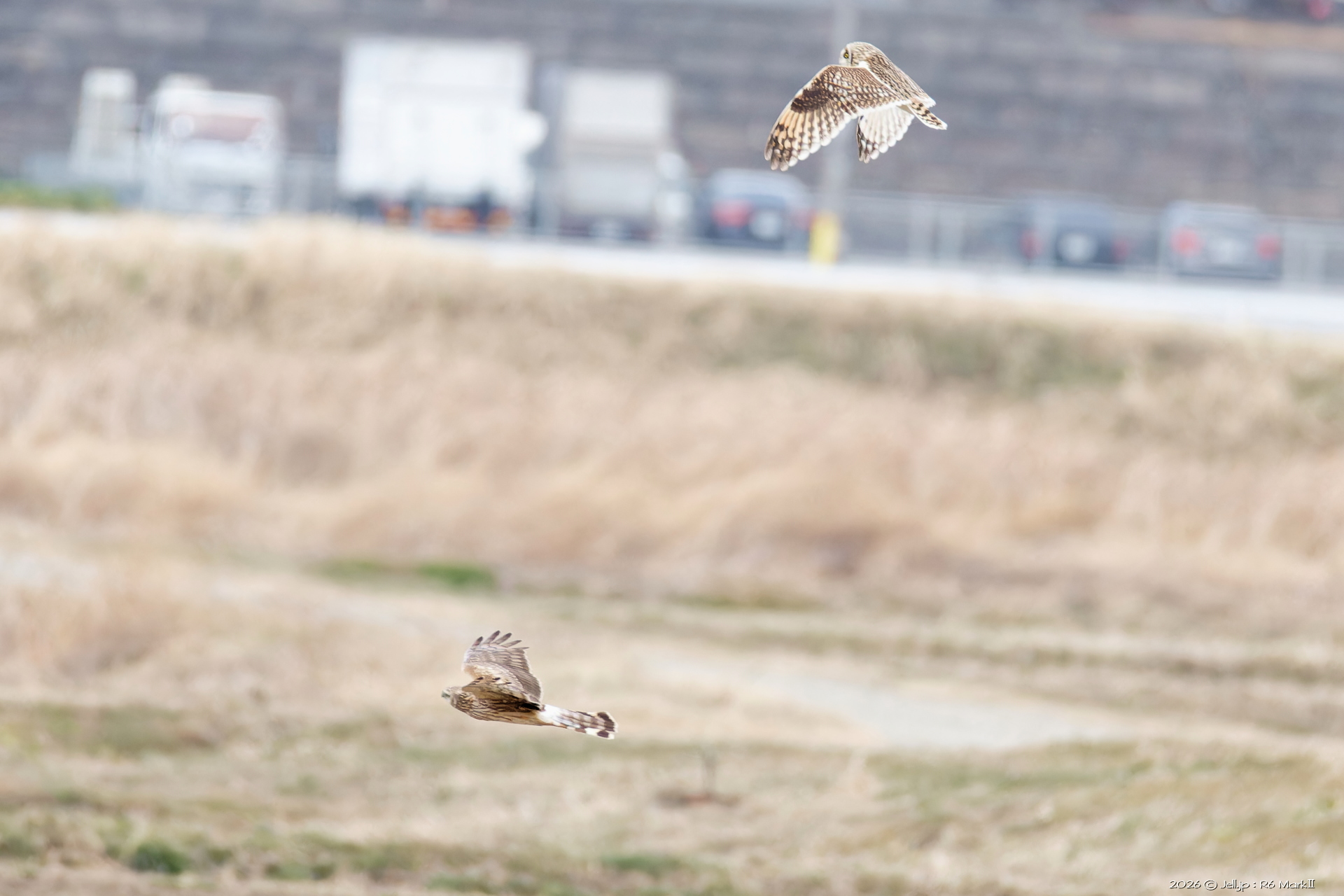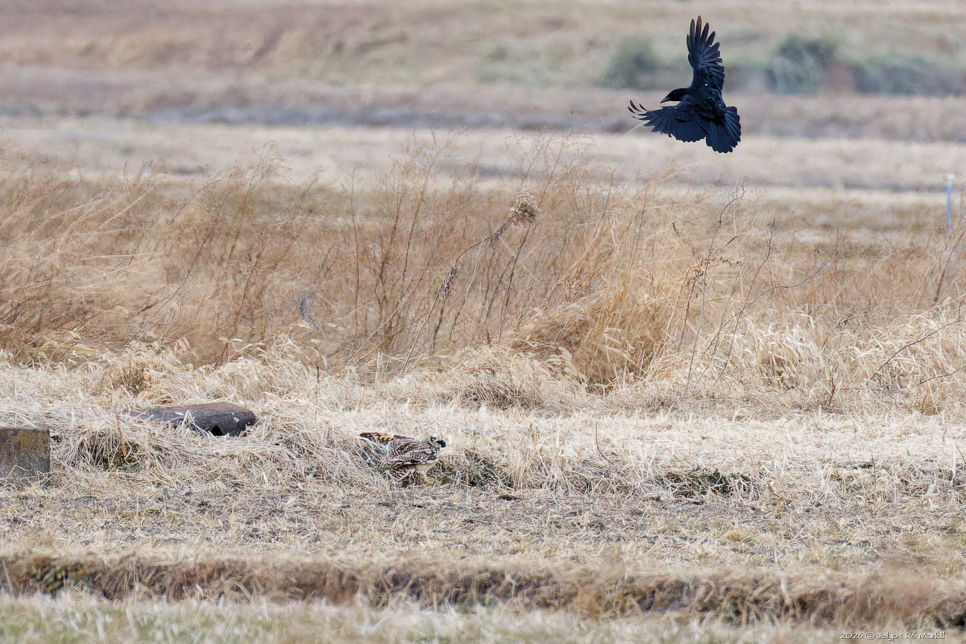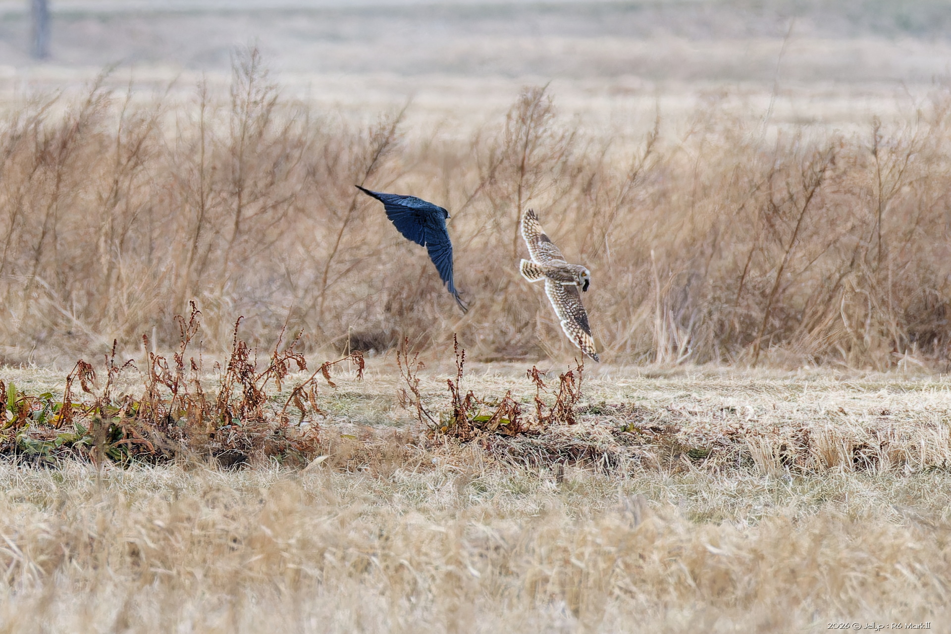 コミミさんの進行方向にハイイロチュウヒ通過!