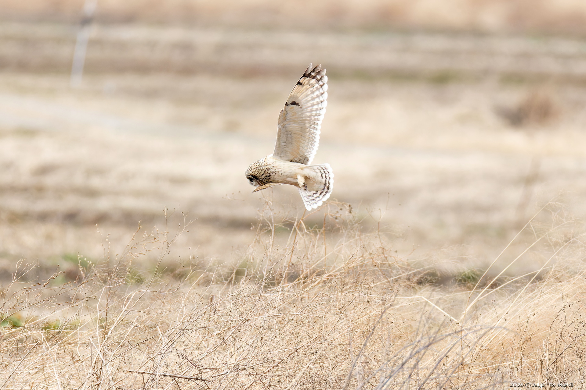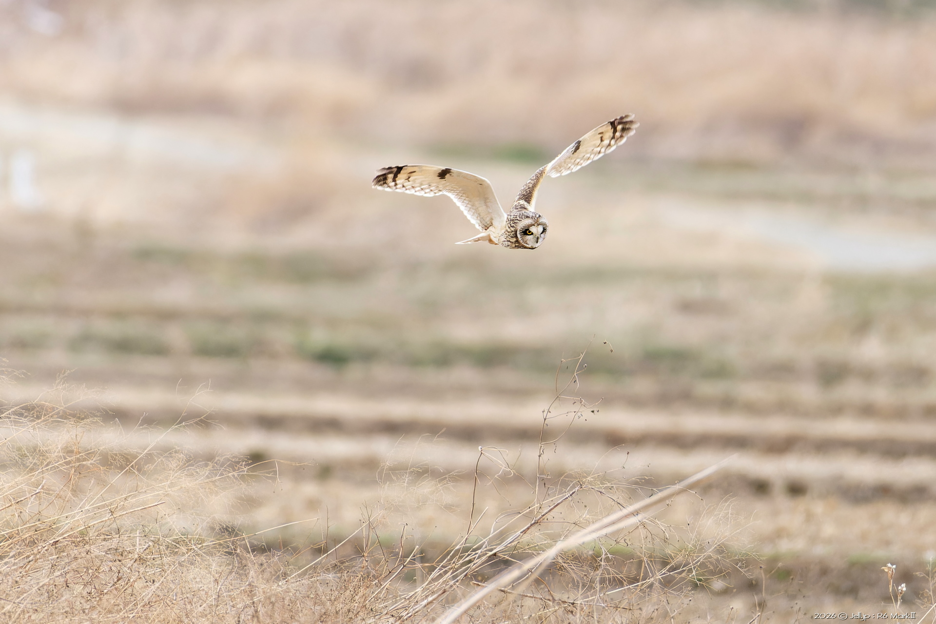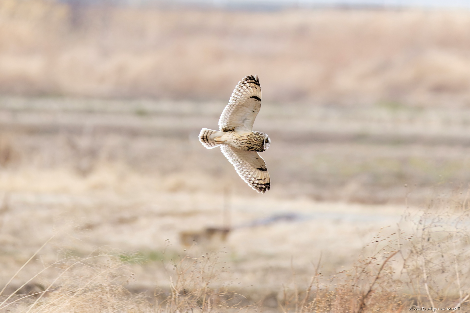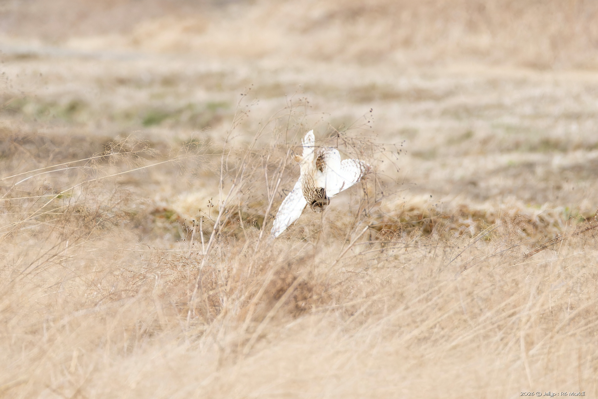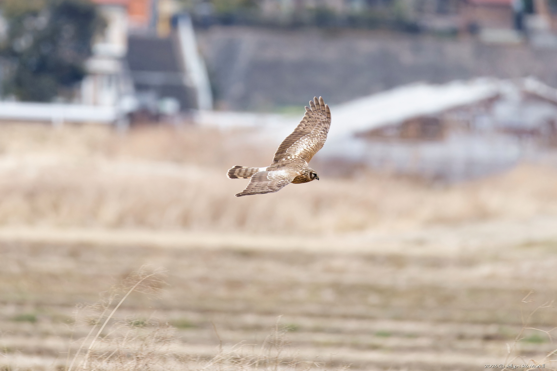 コミミさんの進行方向にハイイロチュウヒ通過!